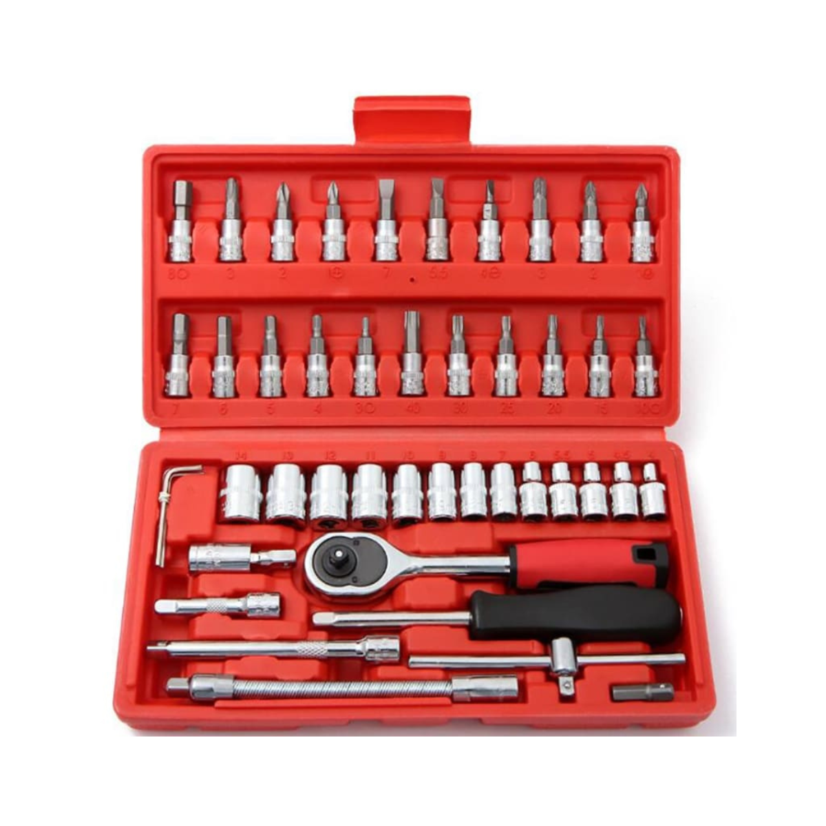 Kit de Llaves y Herramientas con Carraca Reversible, Dados 46 Piezas + Maletín